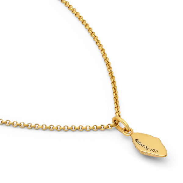 Crafted with delicious detail, in 18ct gold with brilliant cut diamonds, it’s a wink to indulgence, a nod to mornings well spent and a reminder that flakiness isn't always a bad thing! Flip it over and you’ll find a cheeky little secret — engraved with ‘Baked by OW’ on the back.